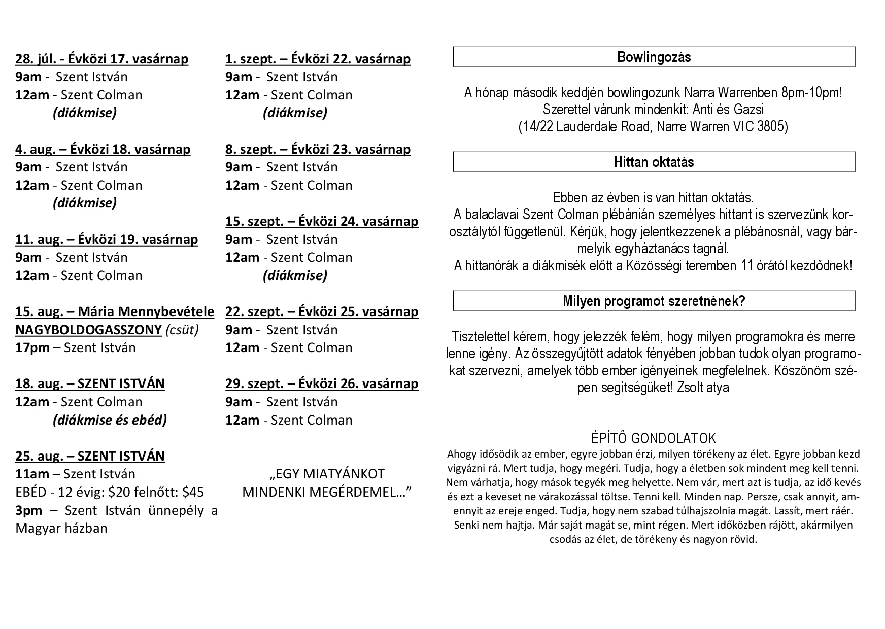 Hirdetések Egyházközségi hirdetéseinket ezek után itt is megnézhetik. Share this: Click to print (Opens in new window) Print Click to share on X (Opens in new window) X Click to share on Facebook (Opens in new window) Facebook Like Loading...